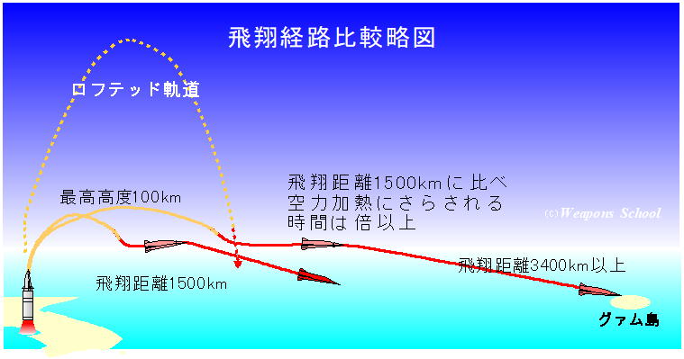 しかし、火星16Bが現在までに飛翔した最大距離は1500kmでしかない。飛翔経路が放物線状の弾道ミサイルで有れば、打上角度を通常より大きく取る、ロフテッド軌道を飛翔させる事で、発射から大気圏再突入までの飛翔環境を、ほぼ再現出来る。